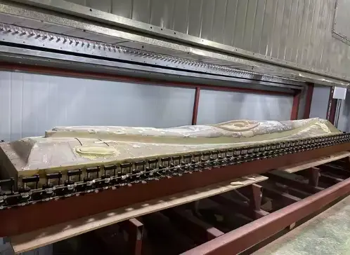 Estas dos láminas se calientan a la temperatura perfecta y se moldean al vacío sobre un molde de alta precisión, creando un casco y una cubierta que luego se unen con una junta químicamente soldada, formando una pieza única, sólida y estanca.